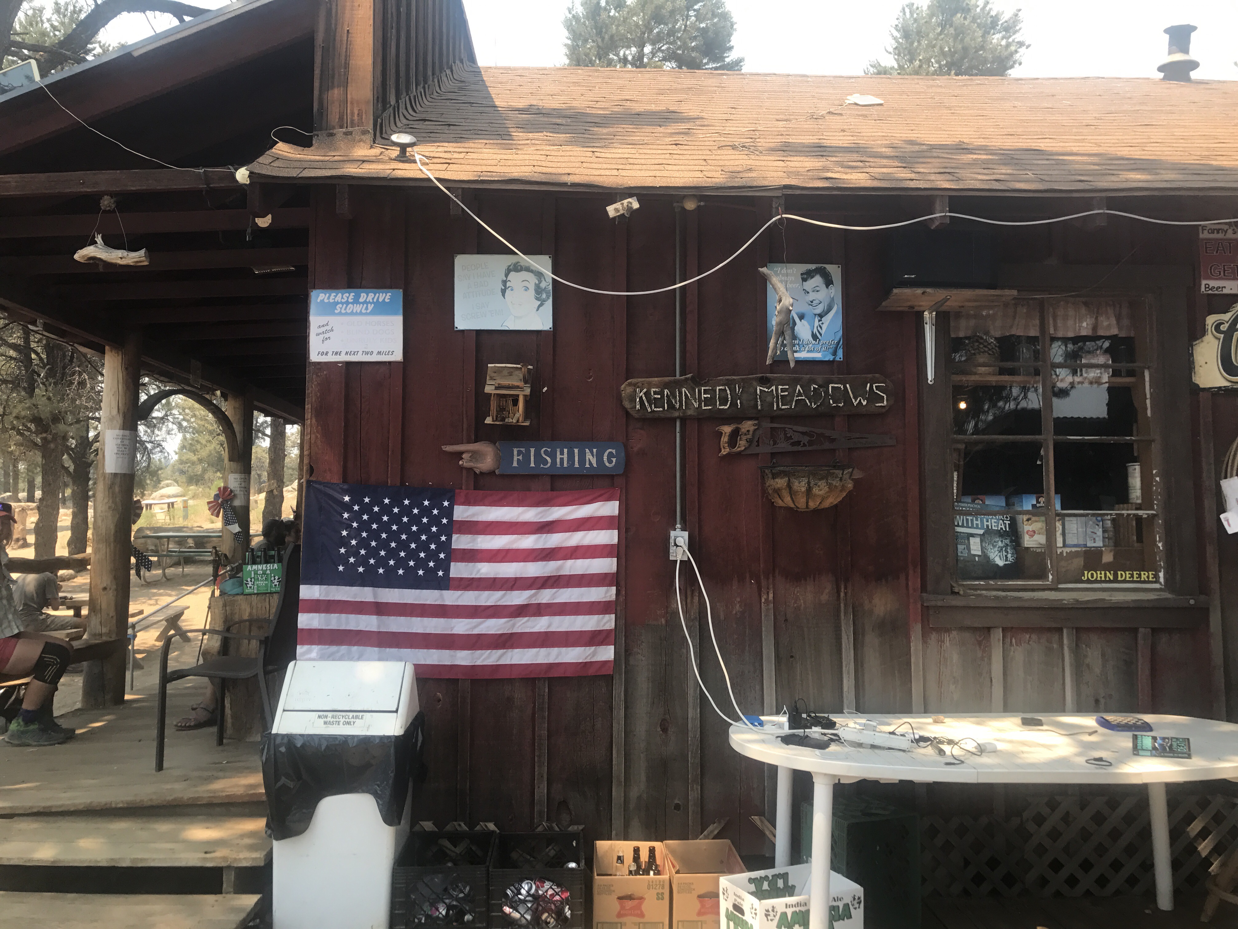 I didn’t get that magical feeling that they got from the book, but it was still really cool. Camping in the back. Huge porch to hang out on. Convenience store…. with beer. Grill fired up making burgers to order. Lots and lots of hikers! Cool place!