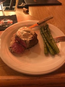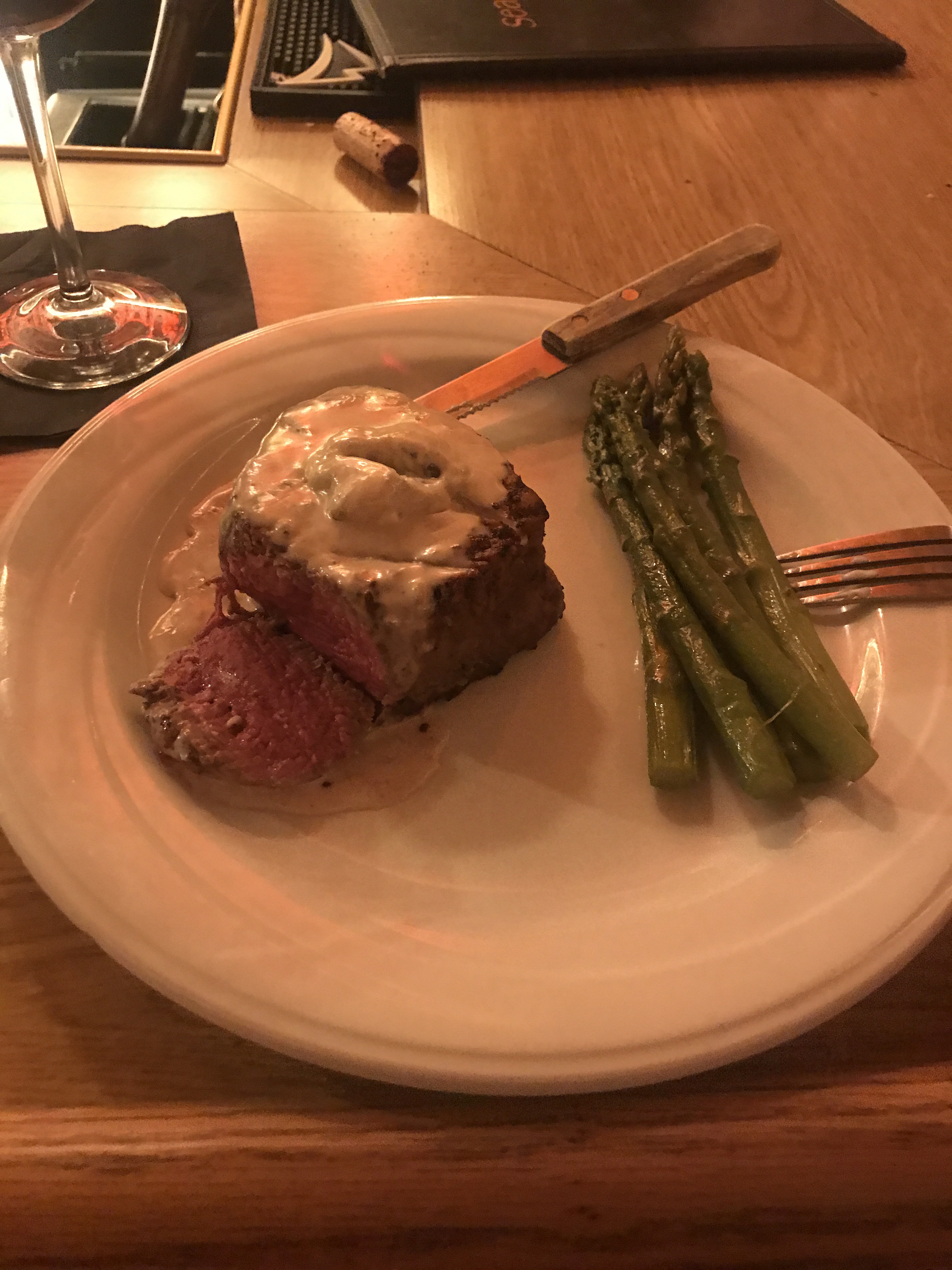 After finding out that my pack hadn’t arrived in the mail, and before the next day when I called Onyx, I decided to treat myself to a great meal in town. Or rather some friends back home treated me. ( You know who you are! Thank you! ) I went to the front desk and asked where I can get a great meal where I needed a knife and fork to eat it, since I only use my hands and a titanium spoon normally. He suggested a steak place down the block. I ate well that night!