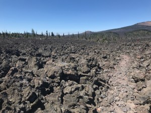 Getting to the hiker rest area at Big Lake Youth Camp was trying. We have to walk through fields and fields of lava flow. Not much protection from the sun and the rocks are like pumice stones and they constantly shift under your feet. It’s a hot day with minimal water sources.